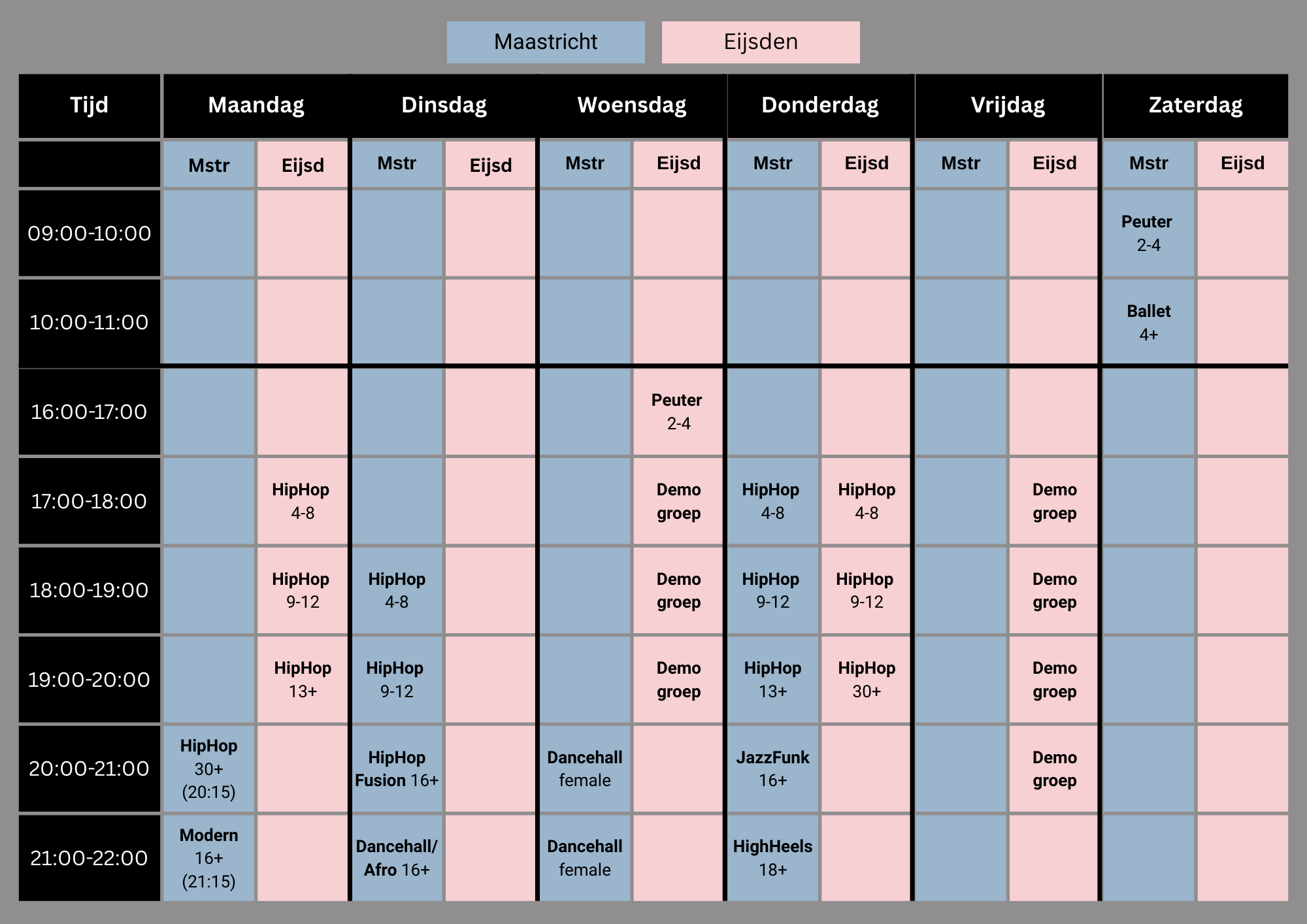Lesrooster / Schedule